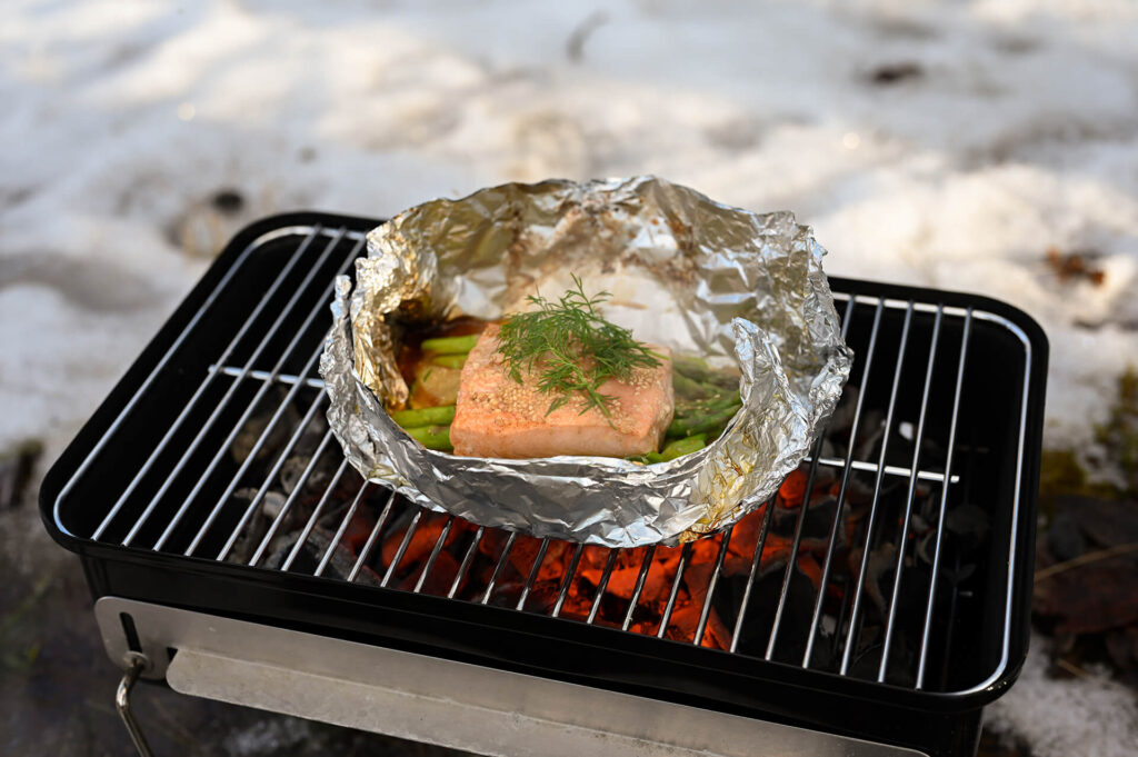 烧烤或火塘用的完美三文鱼块