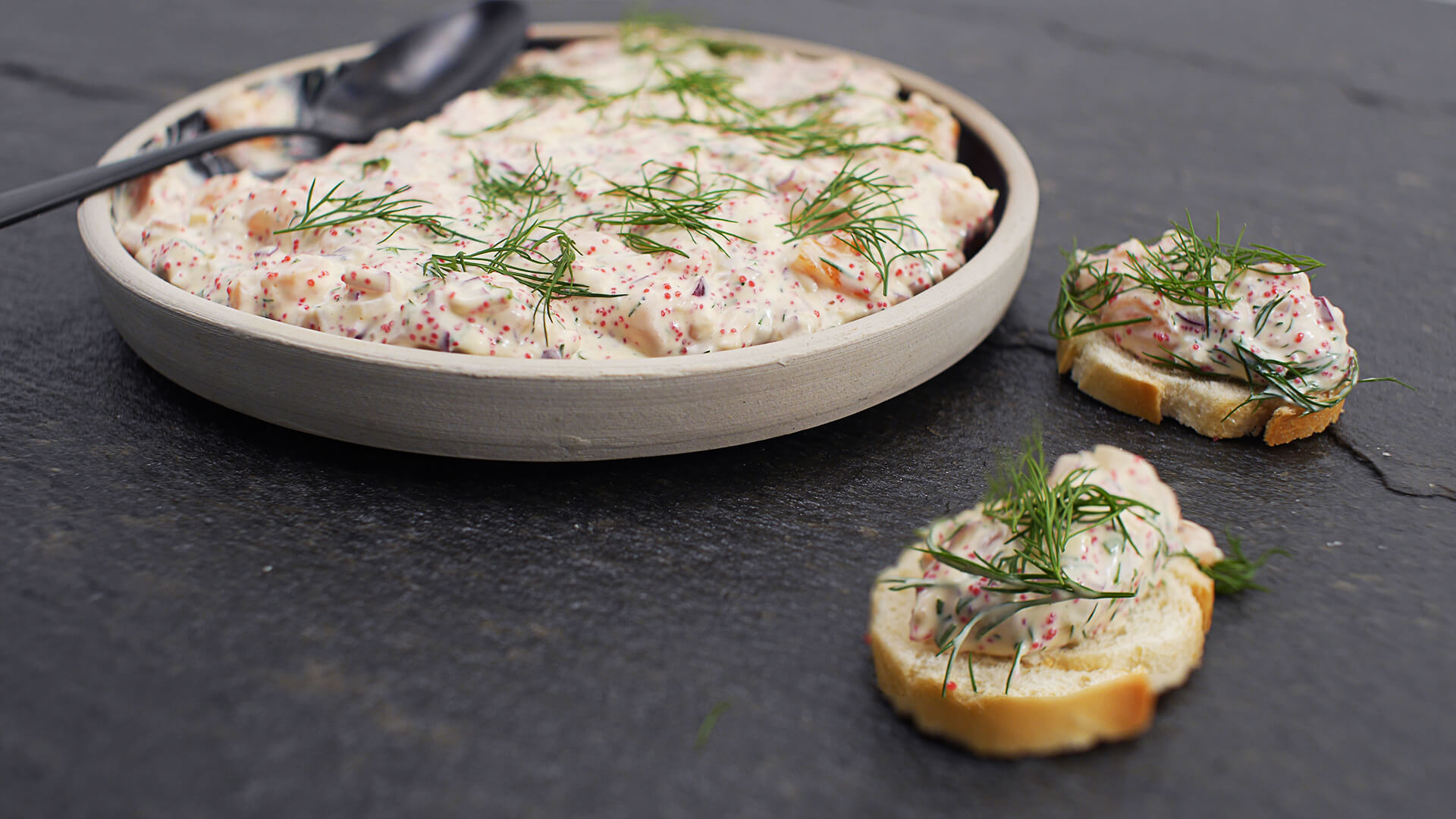 首页 食谱 Frøya 拉克斯卡根 Frøya 拉克斯卡根 20 分钟 简单 午餐时间 说明 避免屏幕进入休眠状态 程序 将烤箱调至 200 ⁰C 将法棍切成薄片,然后放在烤盘上,淋上少许橄榄油,放入烤箱烘烤 8-12 分钟。 将莳萝和红洋葱切碎,放入碗中与酸奶油、蛋黄酱、芥末、柠檬汁和盐混合。 将三文鱼切成小块,与奶油面糊混合,加入少许盐和胡椒调味。 在烤面包上放上三文鱼蛋糕,或配上莳萝和柠檬片。